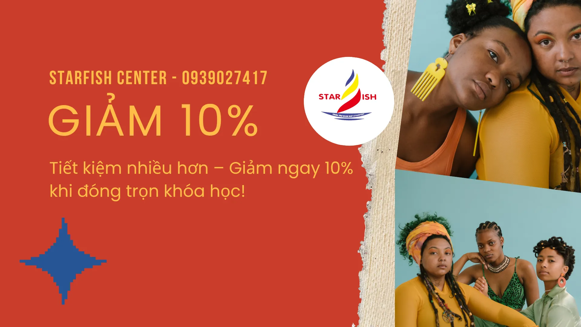 Starfish English Center có hơn 10+ năm kinh nghiệm đào tạo, đồng hành cùng hơn 5.000 học viên chinh phục mục tiêu ngoại ngữ. Chúng tôi mang đến chương trình học chất lượng, lộ trình rõ ràng, cùng nhiều hoạt động ngoại khóa, câu lạc bộ và sự kiện giúp học viên luyện tập giao tiếp, tự tin tiến bộ mỗi ngày.
